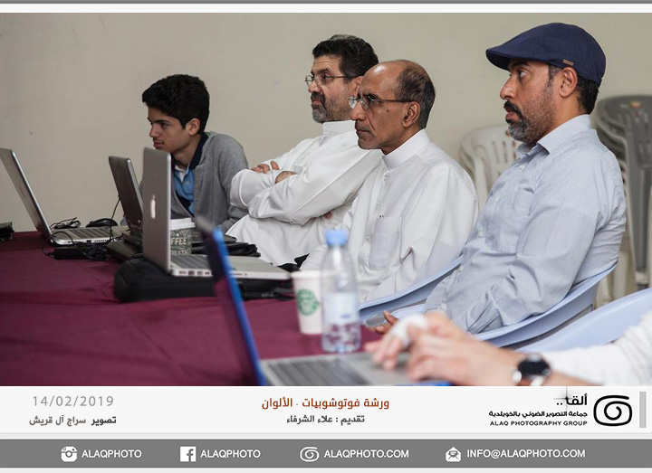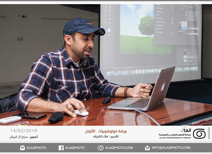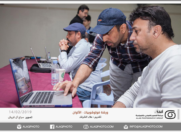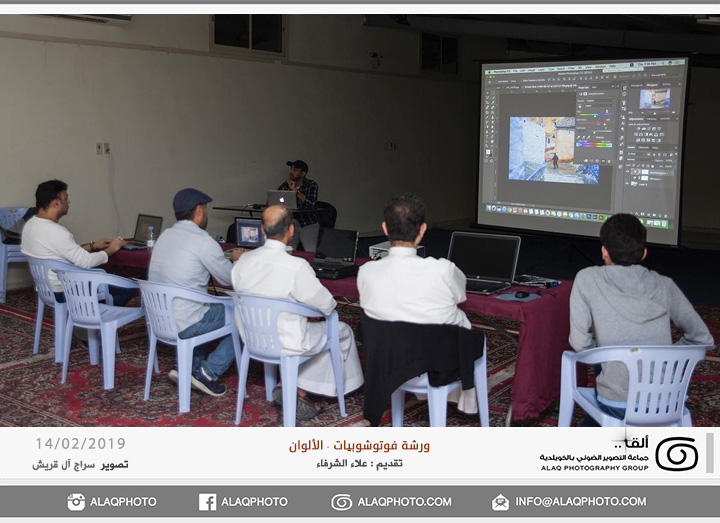 أقامت جماعة ألق الفوتوغرافية ورشة فوتوشوبيات مساء يوم الخميس الموافق ١٤ فبراير ٢٠١٩م بعنوان الألوان في الفوتوشوب ، قدمها الفنان علاء الشرفاء ، ليتحدث فيها عن فوائد و أهداف إبراز الألوان في الصورة الفوتوغرافية مستعرضاً الأدوات التي يقدمها برنامج الفوتوشوب لتحقيق تلك الأهداف ، كما تطرق إلى الفرق بين أداة التباين الـ( saturation ) و أداة الحيوية ( Vibrance ) في تشبع اللون للصورة والآثار اللي تترتب على كل أداة.
