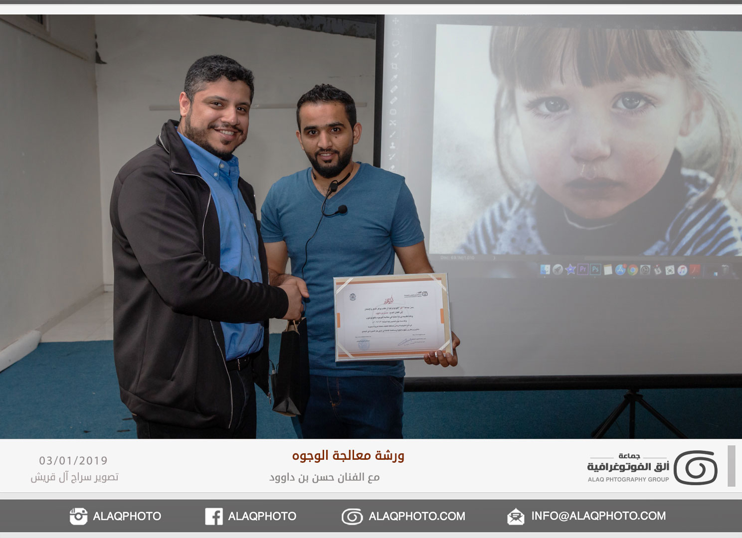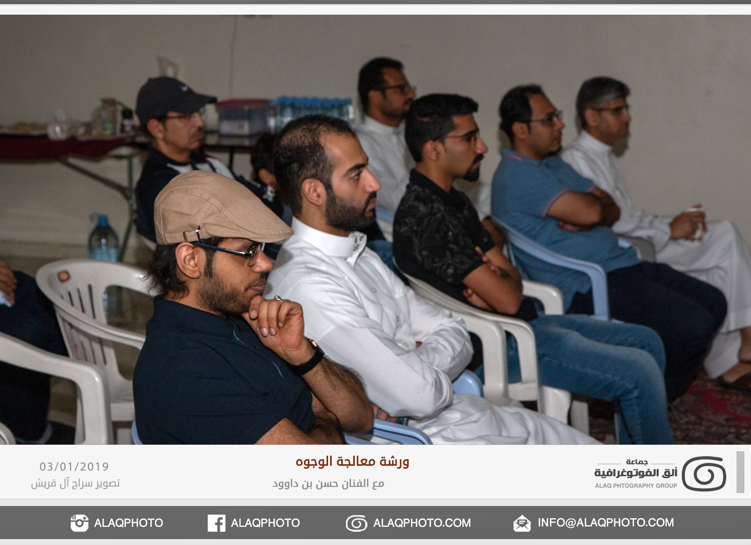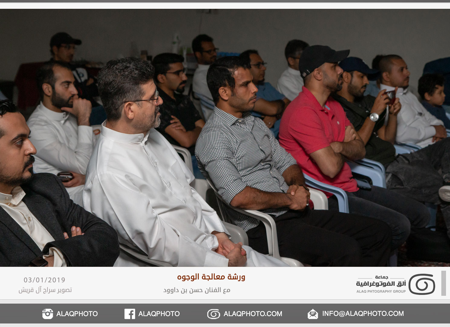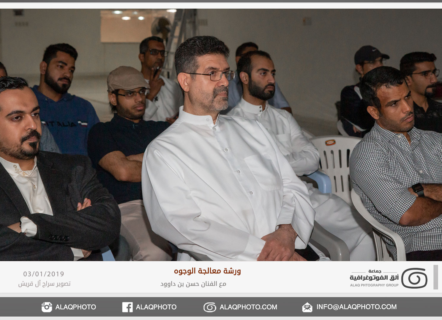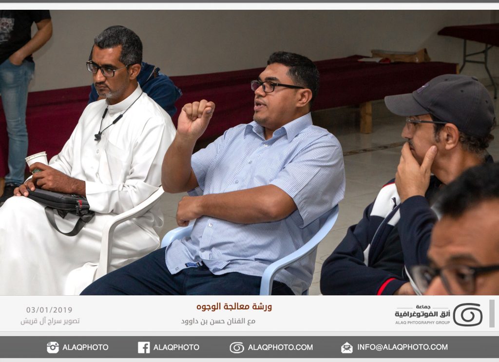 من أكثر أغراض التصوير شعبية في العالم هو تصوير الوجوه أو مايعرف بتصوير البورتريه ، ولكن لكل فنان لمسته الخاصة وإبداعه الخاص في إخراج الصورة ، ومن المبدعين المتألقين حديثاً في هذا المجال الفنان حسن بن داوود من مملكة البحرين الشقيقة والذي استضافته جماعة ألق الفوتوغرافية في ورشة عملية في معالجة الوجوه وذلك مساء يوم الخميس الموافق 3 يناير 2019م على صالة نادي الخويلدية الرياضي .