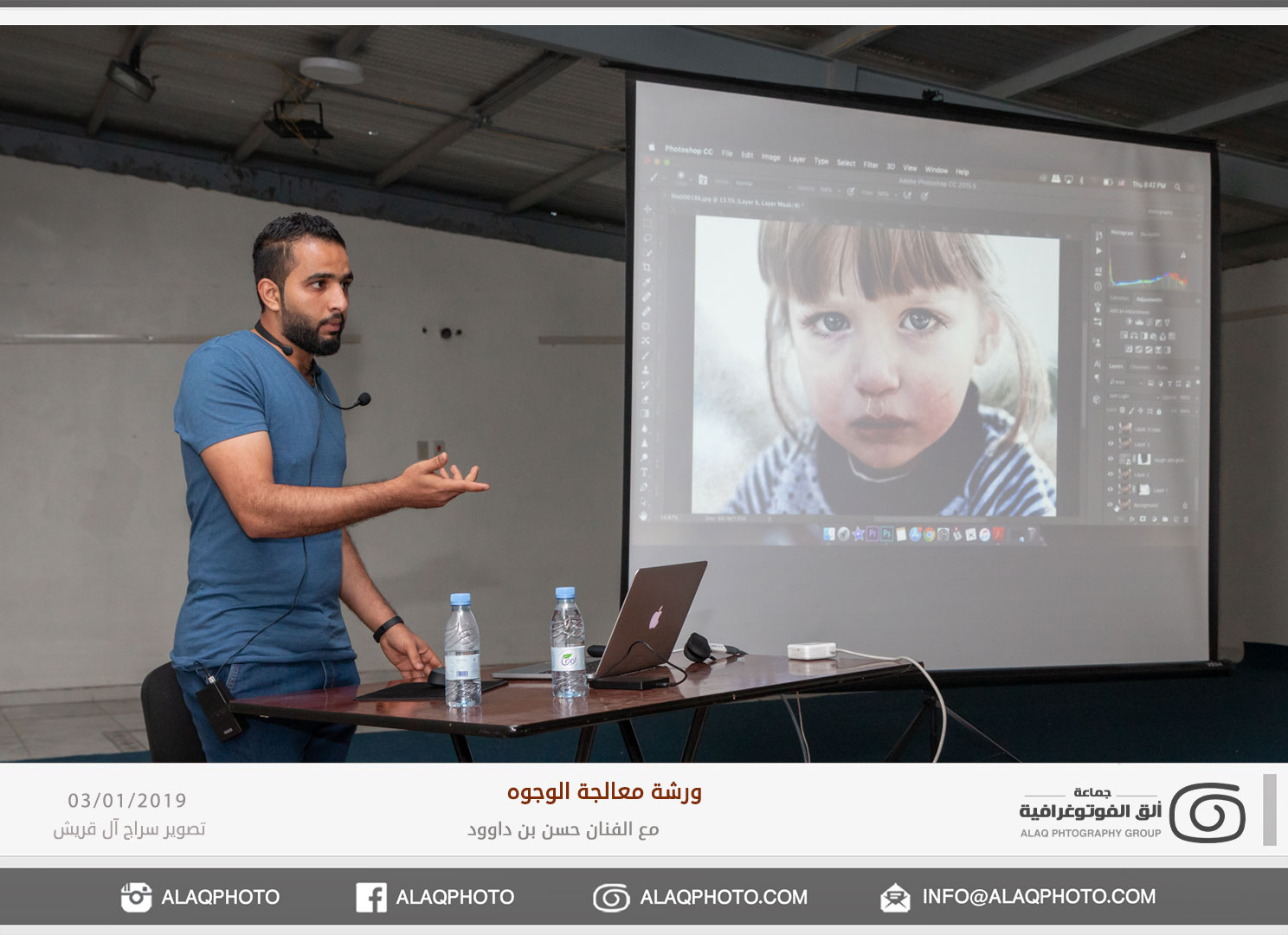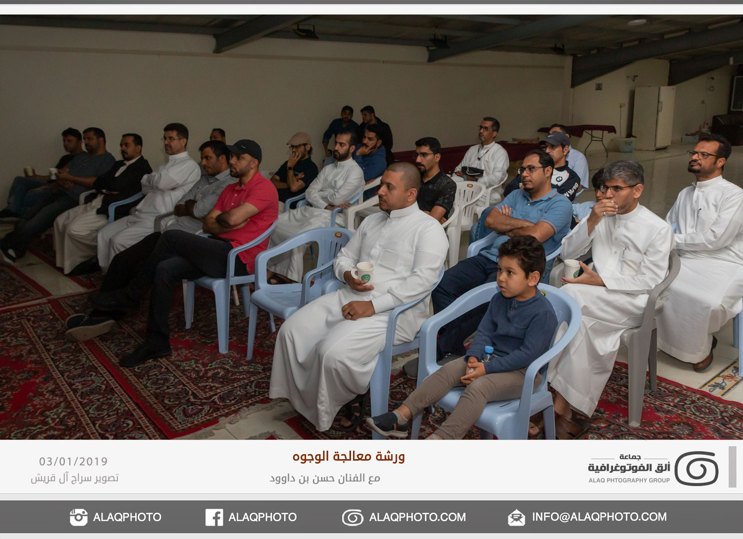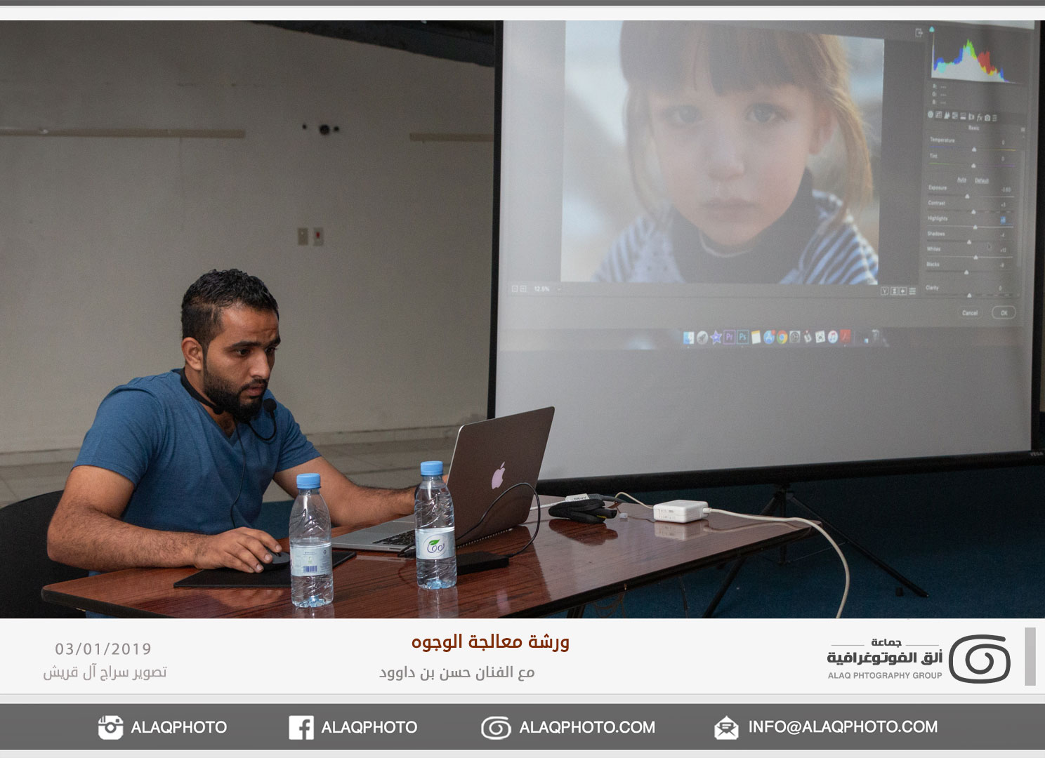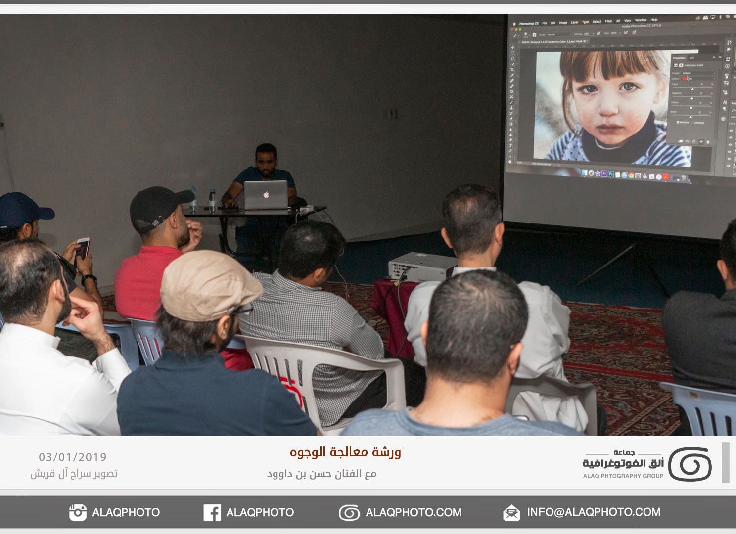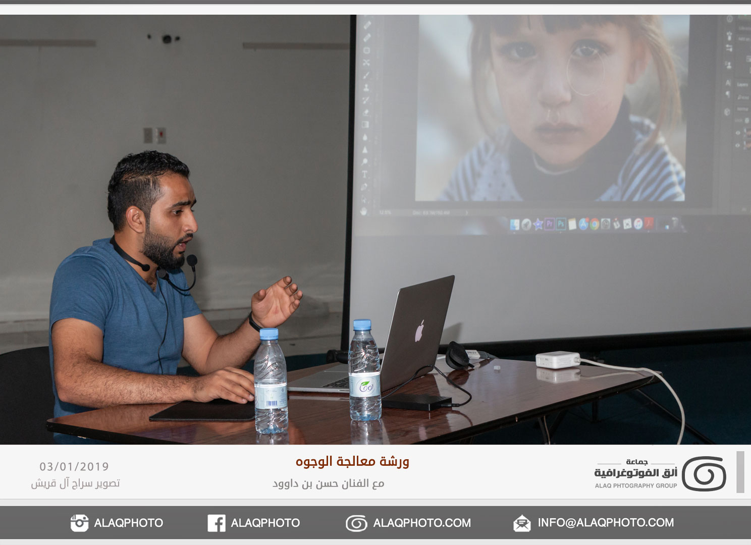 من أكثر أغراض التصوير شعبية في العالم هو تصوير الوجوه أو مايعرف بتصوير البورتريه ، ولكن لكل فنان لمسته الخاصة وإبداعه الخاص في إخراج الصورة ، ومن المبدعين المتألقين حديثاً في هذا المجال الفنان حسن بن داوود من مملكة البحرين الشقيقة والذي استضافته جماعة ألق الفوتوغرافية في ورشة عملية في معالجة الوجوه وذلك مساء يوم الخميس الموافق 3 يناير 2019م على صالة نادي الخويلدية الرياضي .